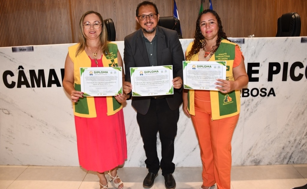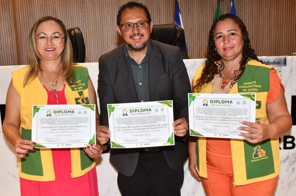 Durante a solenidade, foram entregues diplomas de homenagem as representantes da Federação dos Agentes Comunitários de Saúde e Endemias do Vale do Guaribas (Sindacse-vag) e da Associação Picoense dos Agentes Comunitários de Saúde de Picos (Apacs).