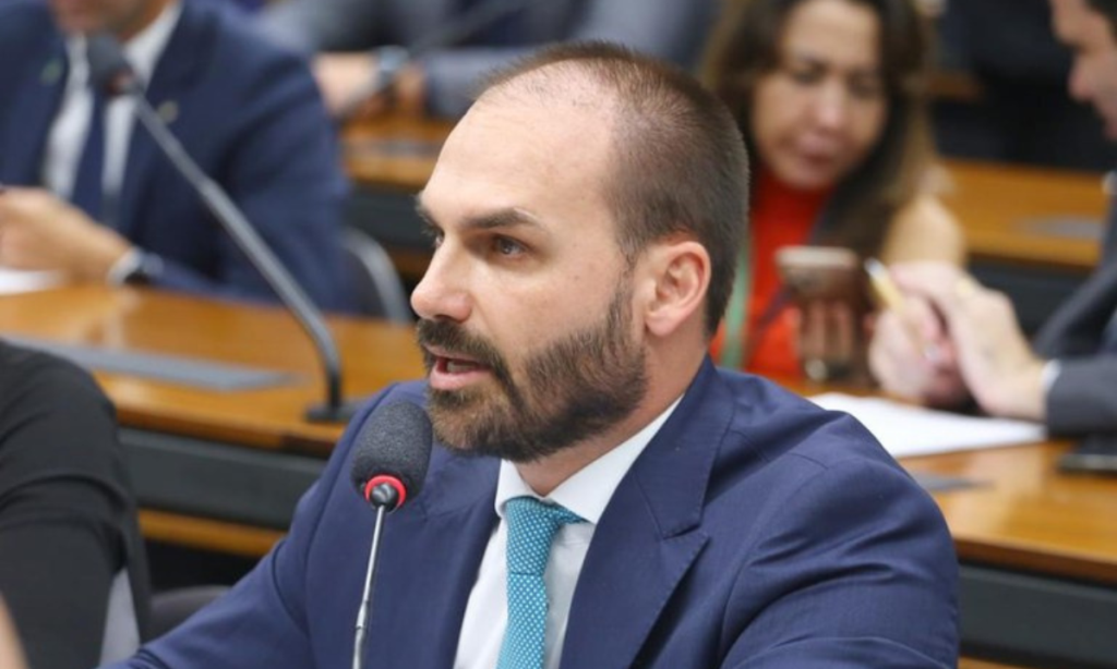 Eduardo Bolsonaro perdeu o mandato por excesso de faltas. O deputado deixou de comparecer a mais de um terço das sessões deliberativas, o que configura perda de mandato pela Constituição.