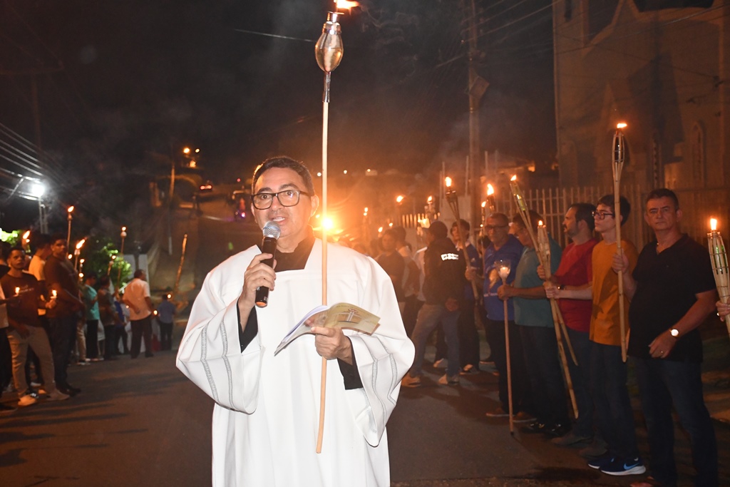 Os padres Pio Feitosa e Paulo Henrique acompanharam a procissão do fogaréu junto com os fiéis.