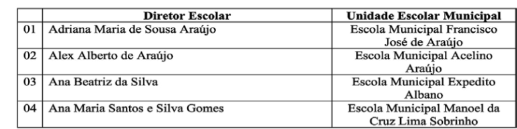 Segundo o decreto, os nomeados foram habilitados no processo de qualificação de gestão democrática para o exercício do cargo de diretor escolar.