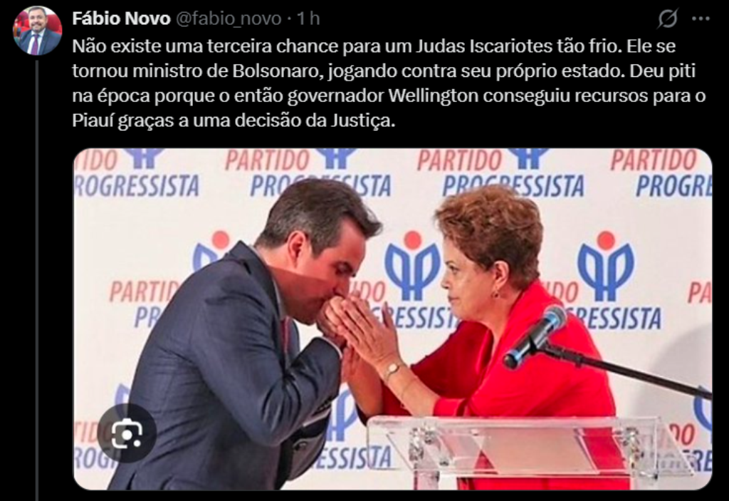 O presidente do PT Piauí, deputado estadual Fábio Novo, reagiu de forma dura nas redes sociais às especulações sobre uma possível reaproximação política entre o presidente Luiz Inácio Lula da Silva (PT) e o senador Ciro Nogueira (PP).