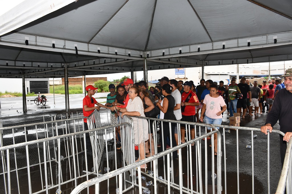 A entrega do pescado teve início por volta das 7 horas da manhã, com as equipes organizando o fluxo de atendimento. Uma estrutura foi montada no Novo Espaço de Eventos, contando com tendas, distribuição de água mineral, disciplinadores de fila e o apoio integral dos servidores da Assistência Social.