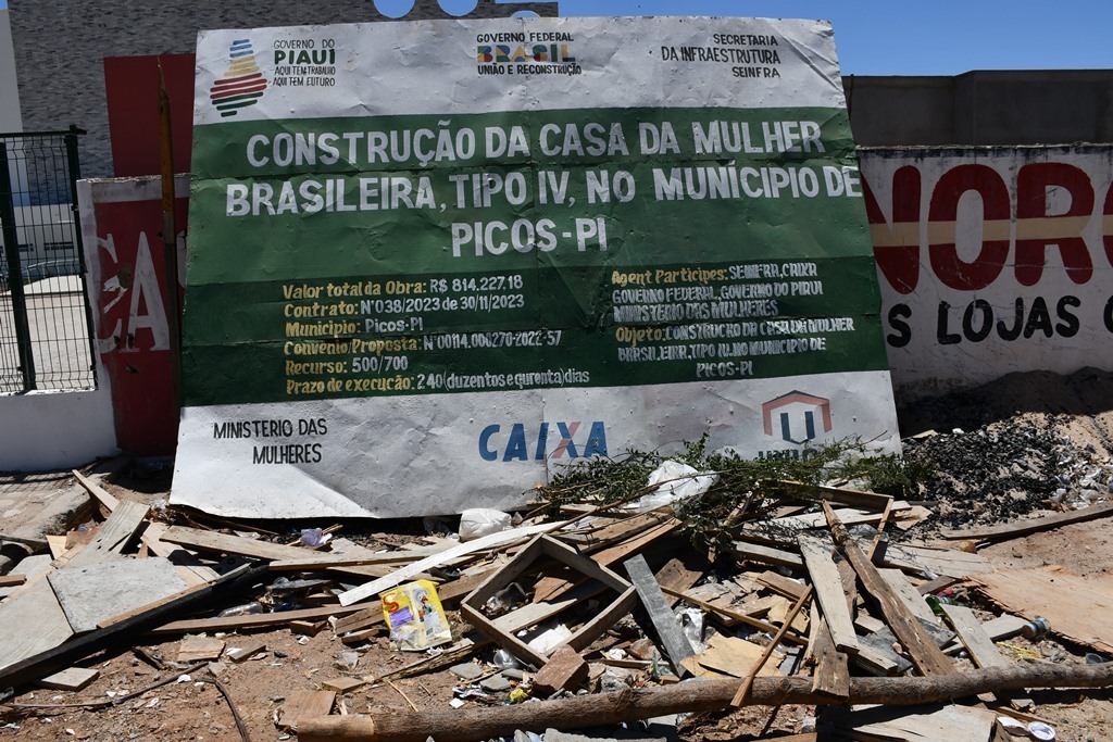 Iniciada em novembro de 2023 com previsão de ser concluída dentro de um prazo de 240 dias, a obra de construção da Casa da Mulher Brasileira no bairro Junco, em Picos, paralisou mais uma vez e o serviço não tem previsão de quando será retomado.