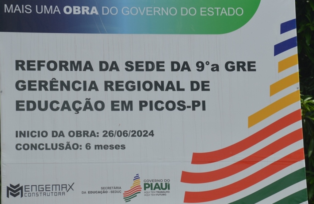 A Engemax Construtora deu início à obra de conclusão da reforma da 9ª Gerência Regional de Educação, em Picos, no dia 26 de junho de 2024 e, tinha um prazo de seis meses para terminar o serviço, que está paralisado mais uma vez.