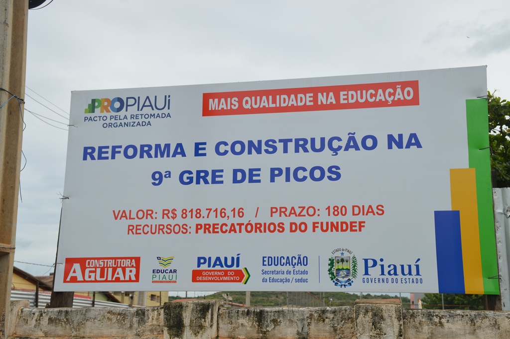 A primeira ordem de serviço para reforma do prédio da 9ª GRE foi assinada pelo então governador Wellington Dias (PT), durante visita a Picos em 30 de outubro de 2020. A solenidade foi realizada na unidade escolar Mário Martins, no bairro Junco, na presença de dezenas de convidados.