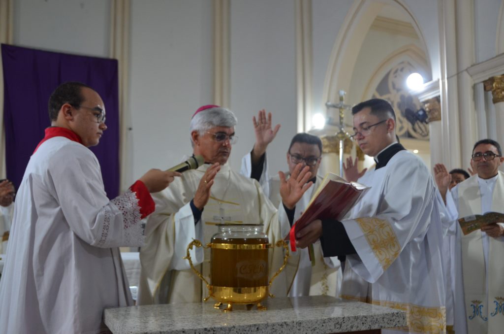 Durante a missa, dom Plínio José abençoou os óleos dos enfermos e dos catecúmenos e consagrou o óleo do crisma, que serão utilizados nos sacramentos como batismo, confirmação, unção dos enfermos e ordenações sacerdotais e episcopais.