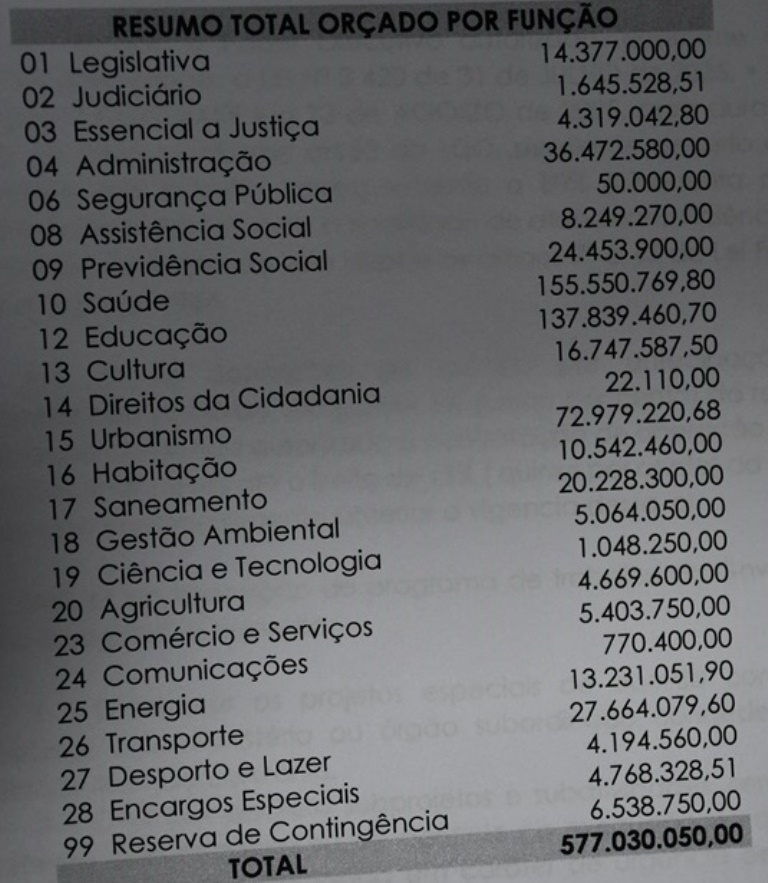 Seguindo o que previam as propostas dos últimos anos, a Secretaria Municipal de Saúde terá a maior dotação orçamentária em 2026, com R$ 155.550.769,80. Em seguida vem à pasta da Educação, com orçamento de R$ 137.839.460,70.