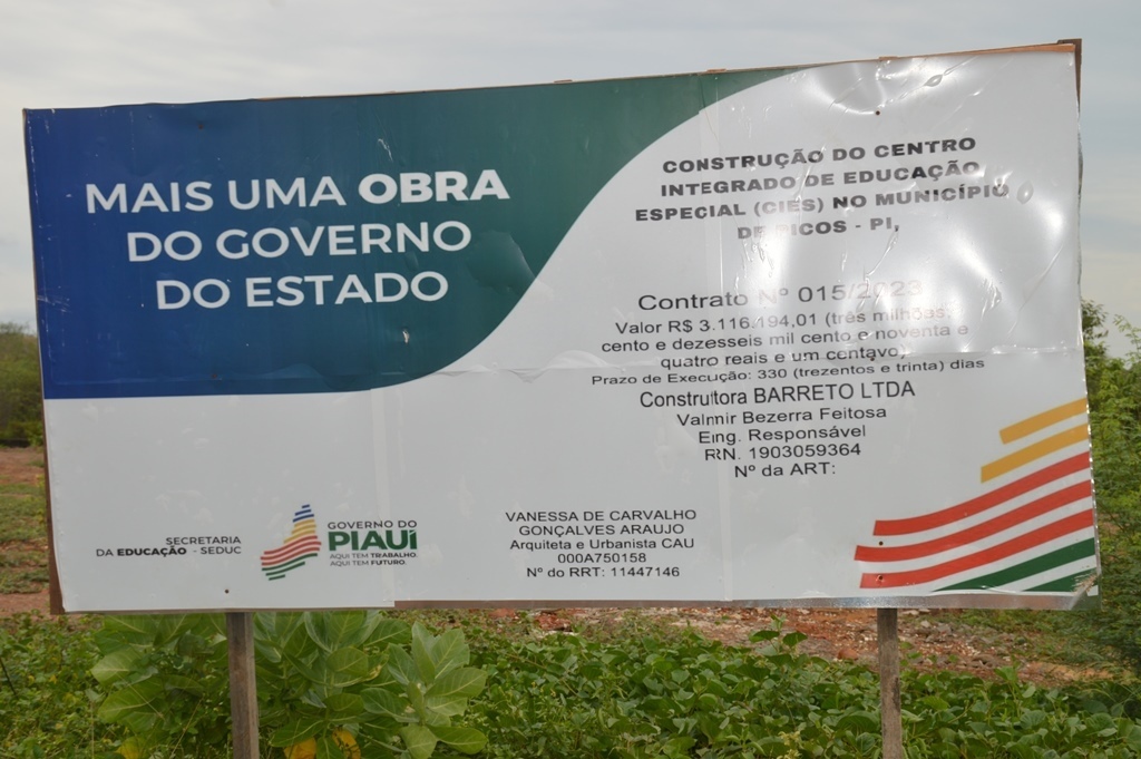 O novo contrato tem como objeto a construção do Centro Integrado de Educação Especial (CIES), no bairro Pedrinhas, em Picos, com prazo de execução de 480 dias.