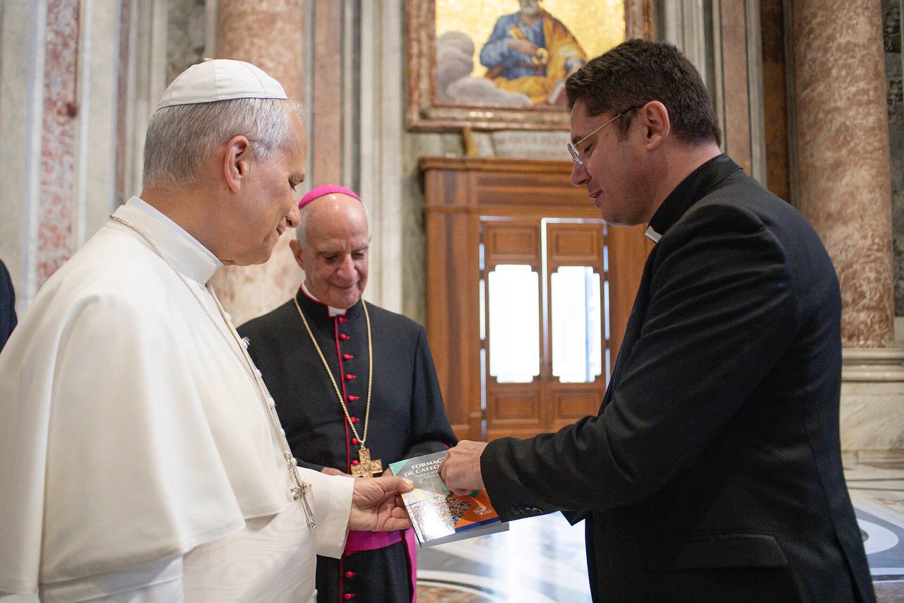 Em suas redes sociais o padre Wagner Carvalho posto fotos do momento e destacou. “Encontro com o Santo Padre, Papa Leão XIV. Entreguei a ele o livro que reúne os passos da nossa Comissão Bíblico-catequética nestes últimos dois anos” – contou.