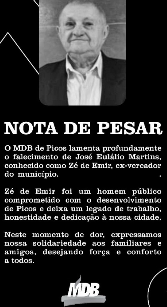 O diretório municipal do MDB emitiu nota de pesar lamentando a morte de Zé de Emir.