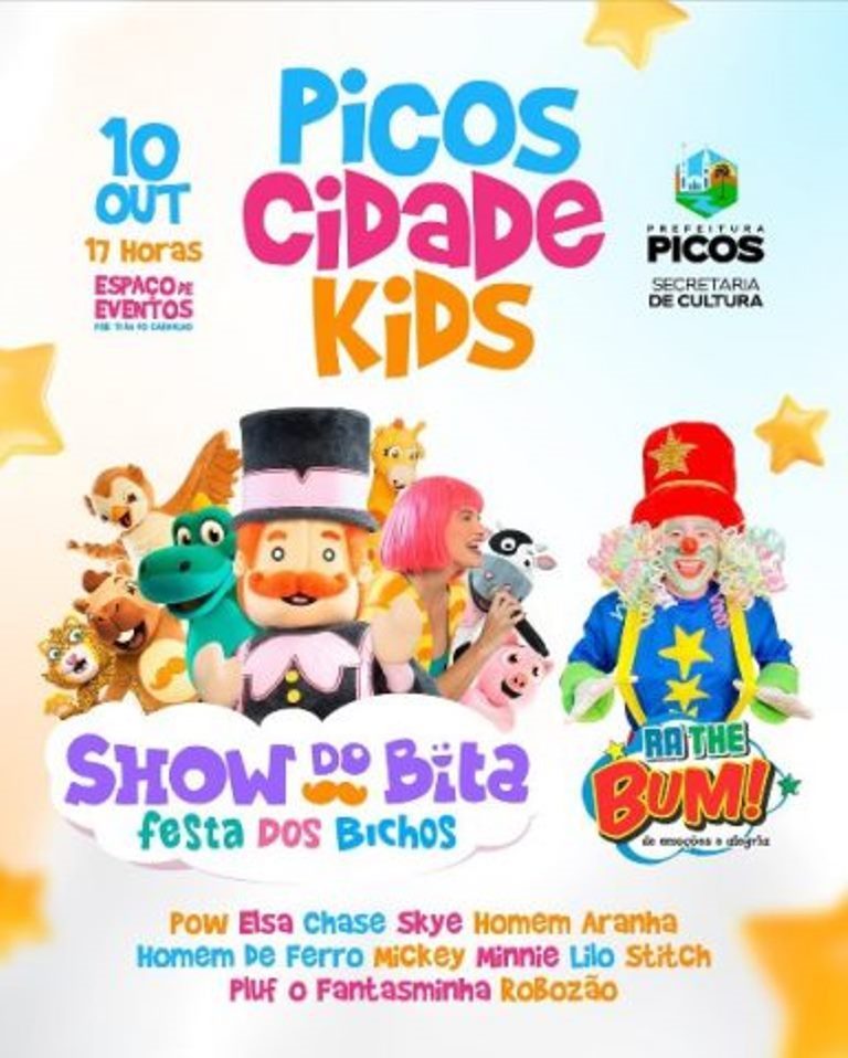 O Picos Cidade Kids acontecerá no próximo dia 10 de outubro, a partir das 17 horas, no Espaço de Eventos, por trás do Supermercado R. Carvalho, no Bairro Boa Sorte .