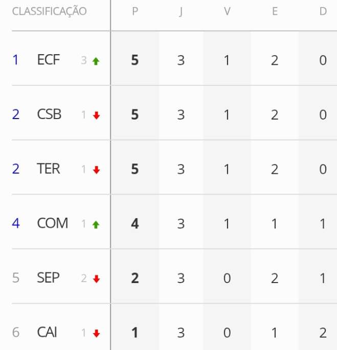 Faltando apenas duas partidas da primeira fase, a Sep está na vice-lanterna da competição, à frente apenas do Caiçara que tem um ponto ganho até o momento.
