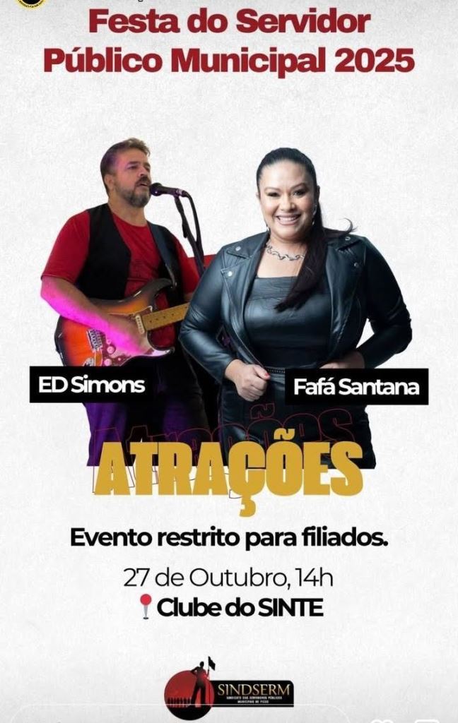 O evento restrito aos filiados ao Sindicato dos Servidores Públicos Municipais de Picos (Sindserm) terá início a partir das 14 horas, cm animação de Ed Simons e Fafá Santana.