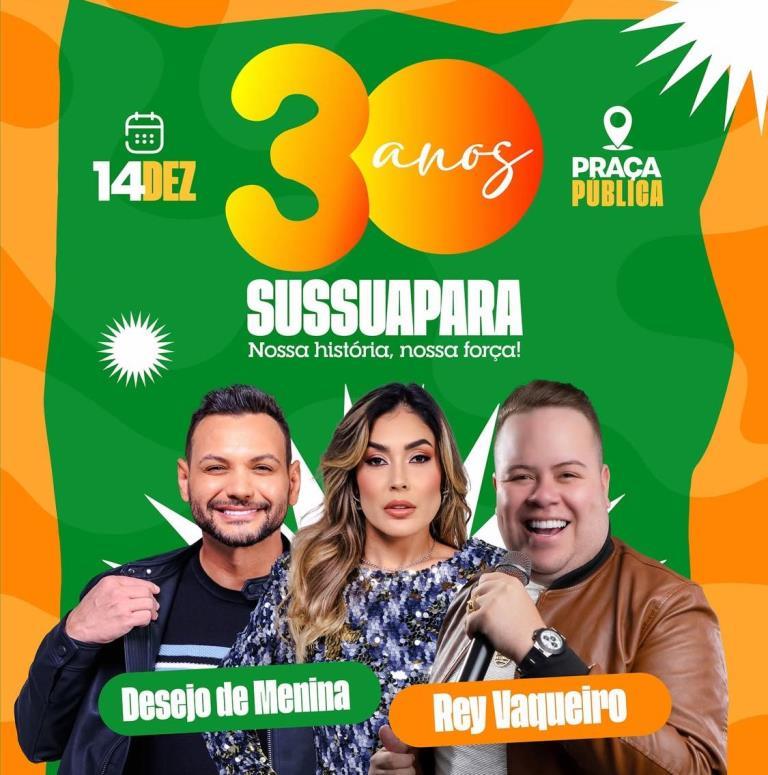 As apresentações serão no próximo dia 14 de dezembro na praça Djalma Pereira Nunes, centro da cidade, como parte da programação alusiva aos 30 anos de emancipação política, administrativa do município de Sussuapara.