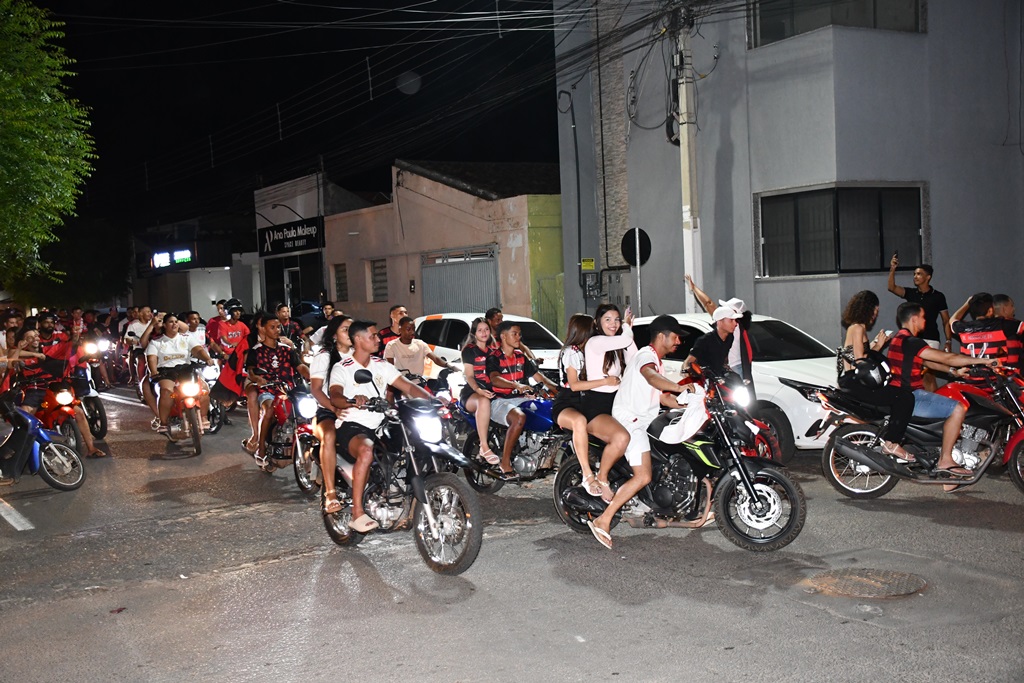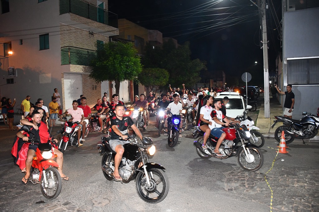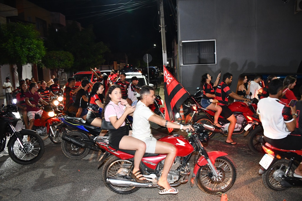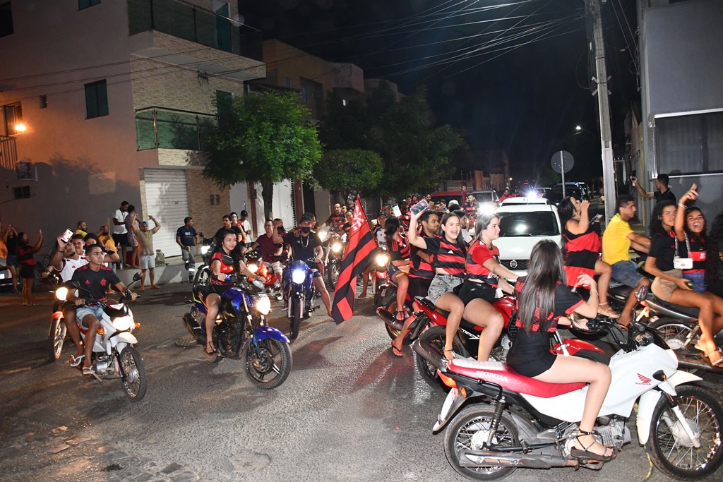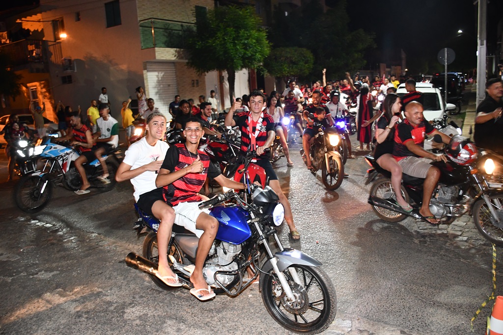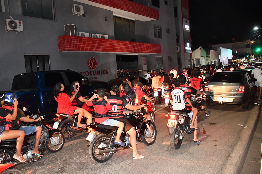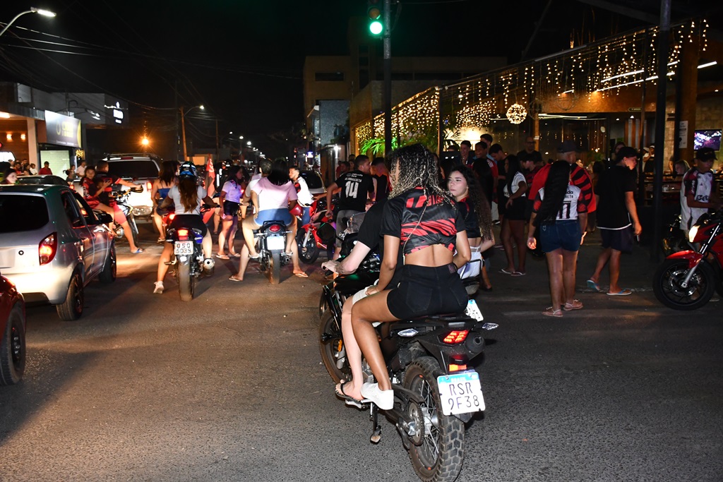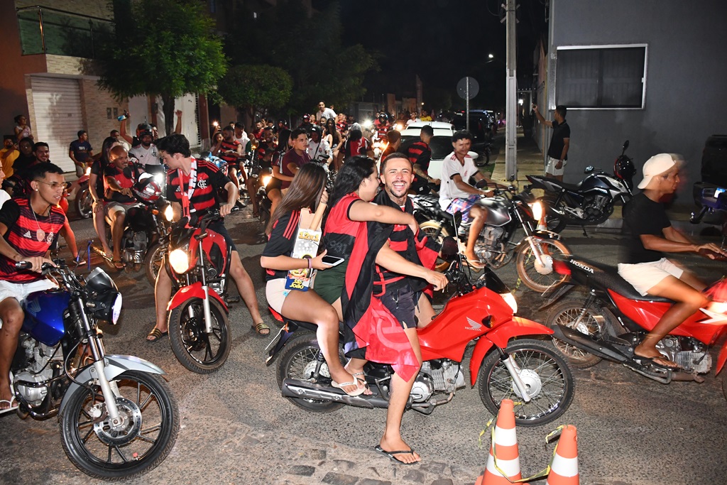 Num misto de carreata e motociata, centenas de torcedores do Flamengo percorreram as ruas de Picos e depois se concentraram na Praça de Alimentação, onde funcionam várias pizzarias e restaurantes.