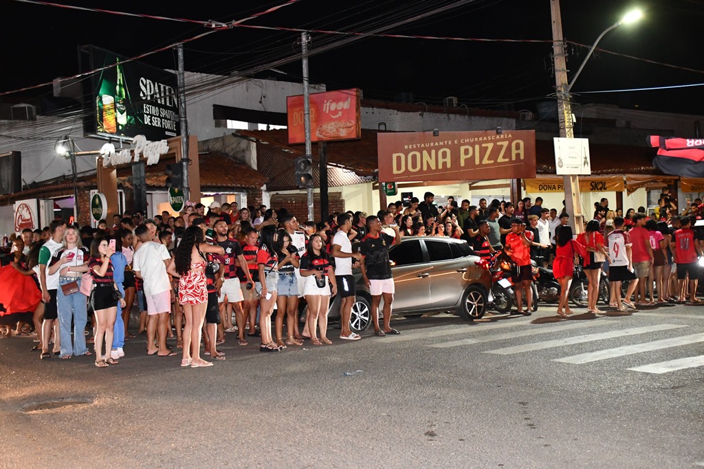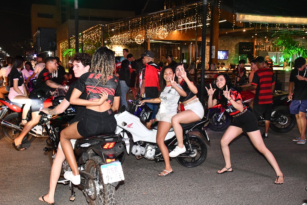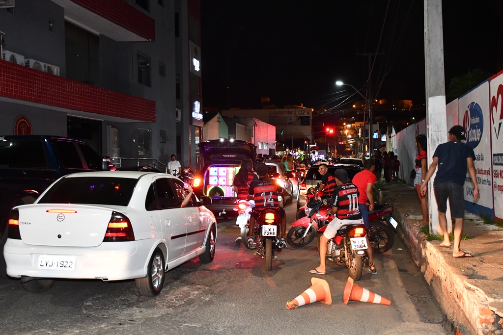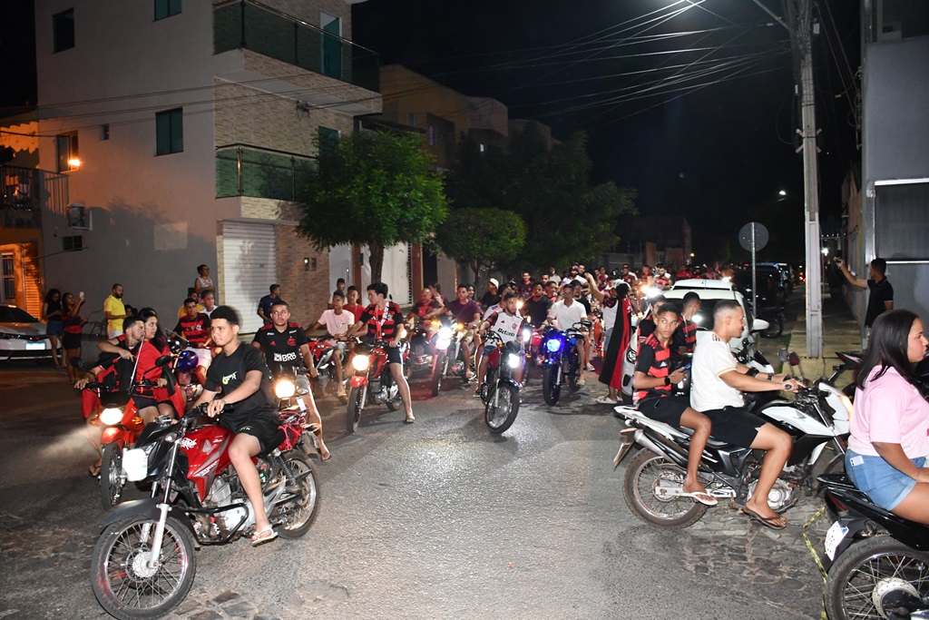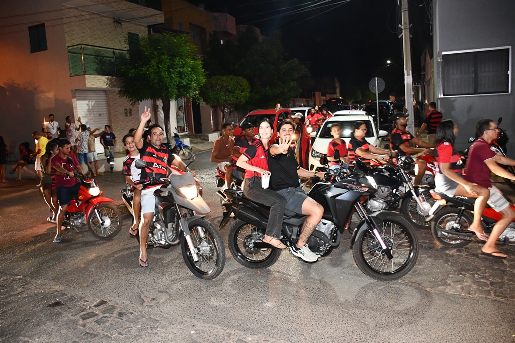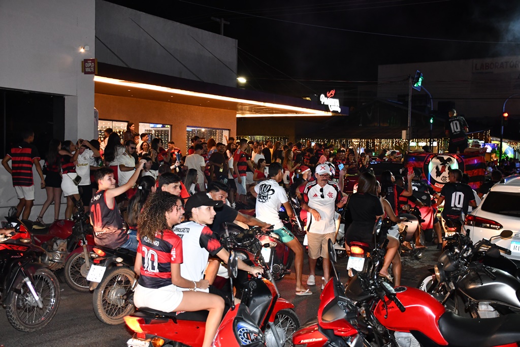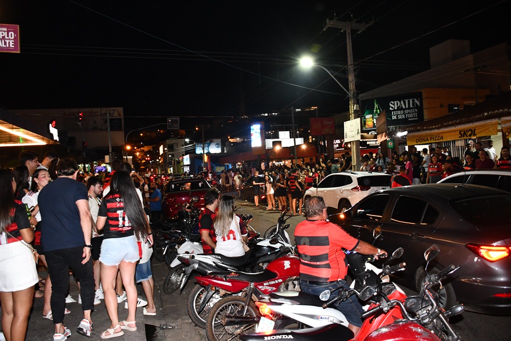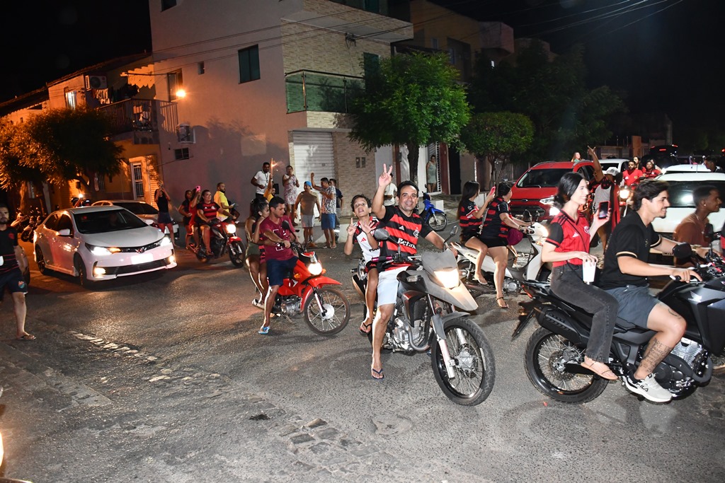 Num misto de carreata e motociata, centenas de torcedores do Flamengo percorreram as ruas de Picos e depois se concentraram na Praça de Alimentação, onde funcionam várias pizzarias e restaurantes.