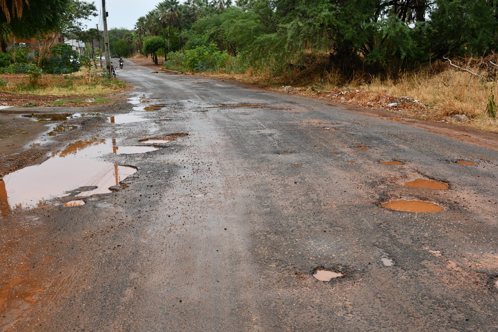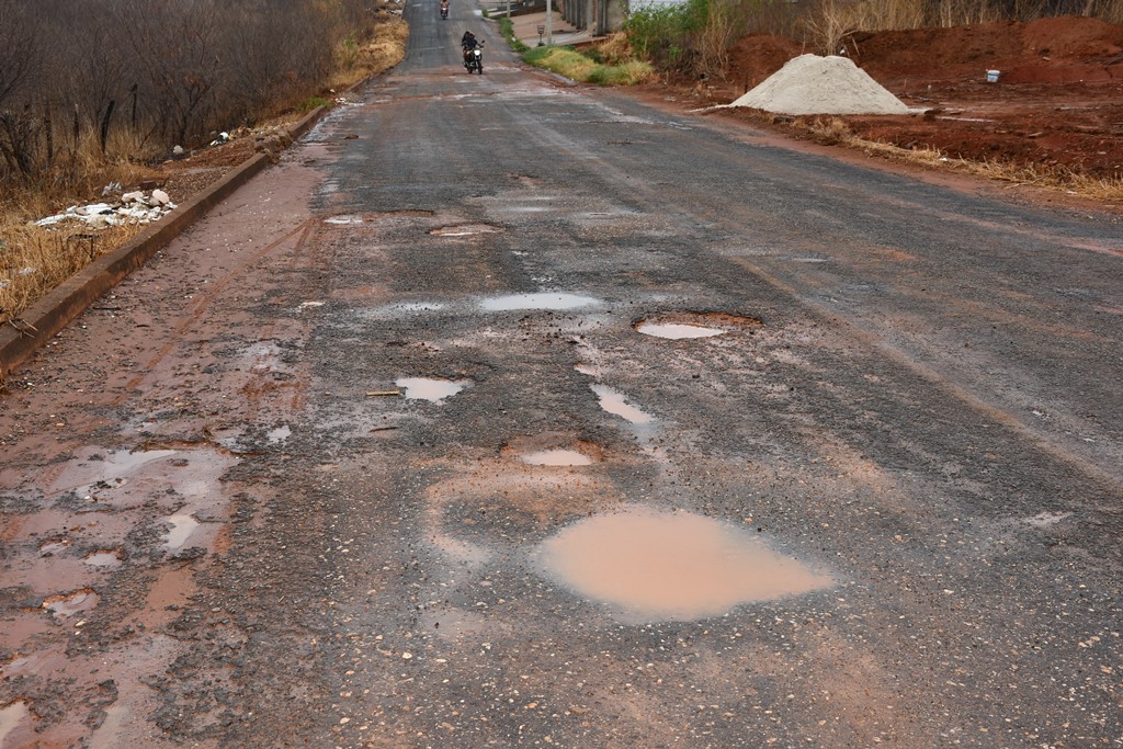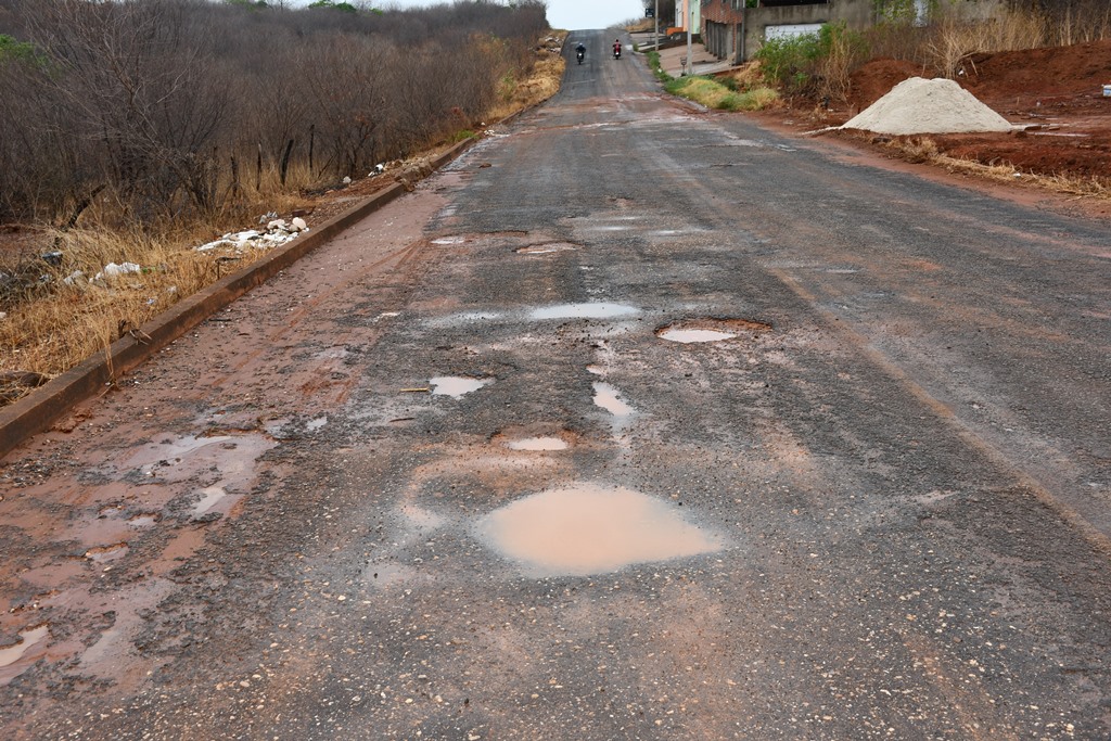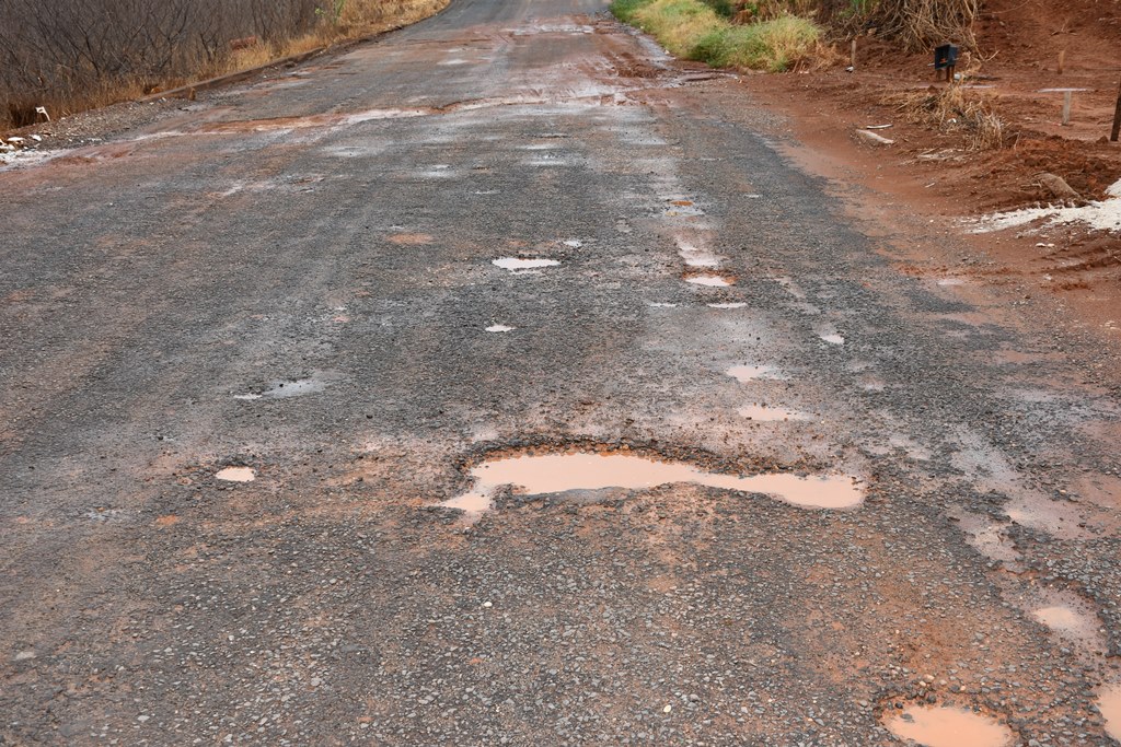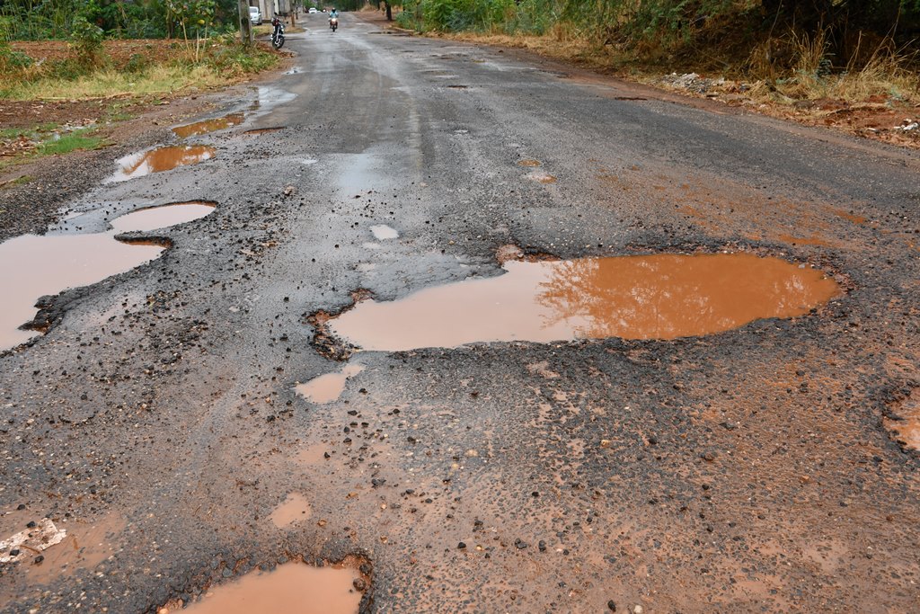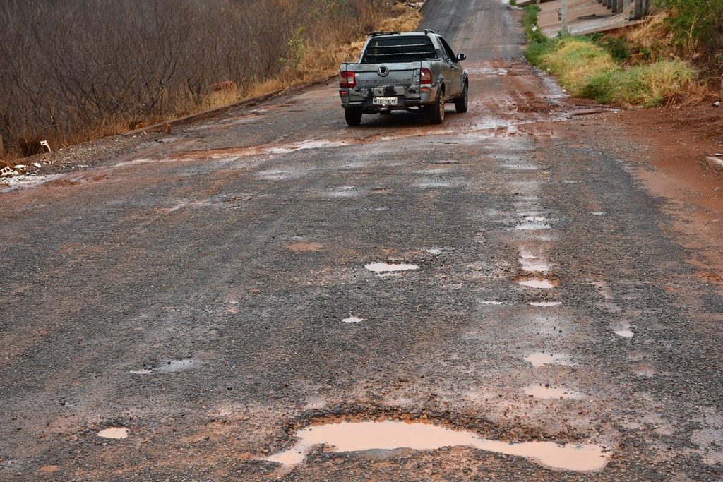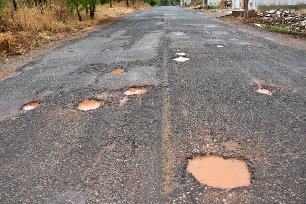 Sem passar por um recapeamento faz muitos anos, a estrada está cheia de buracos em vários pontos