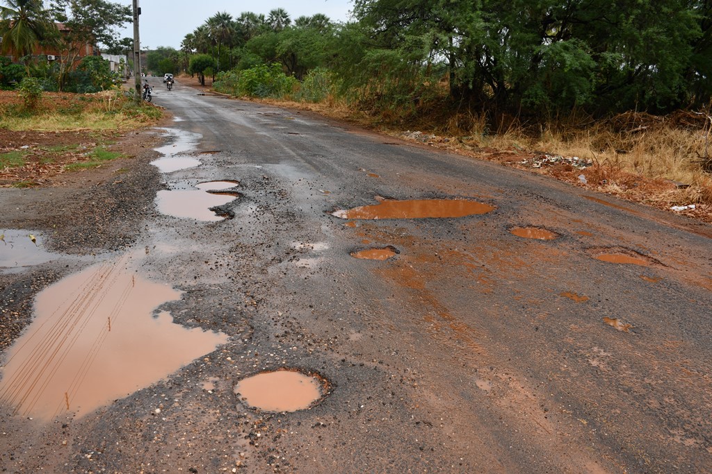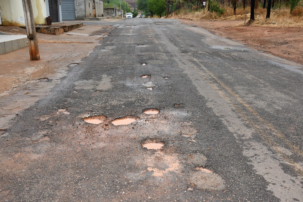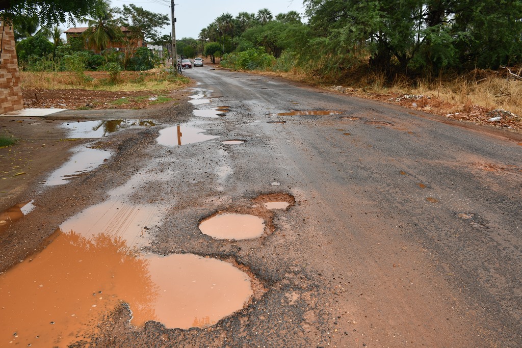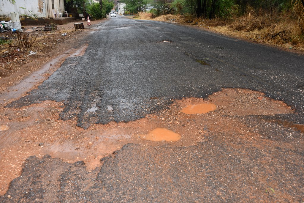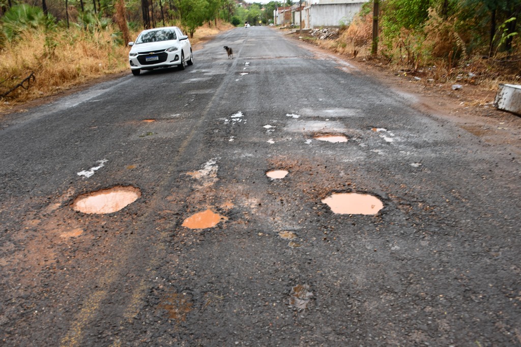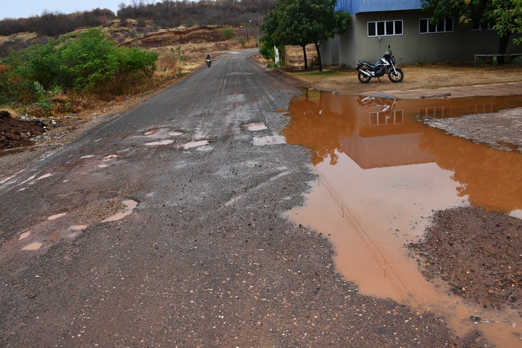 Sem passar por um recapeamento faz muitos anos, a estrada está cheia de buracos em vários pontos
