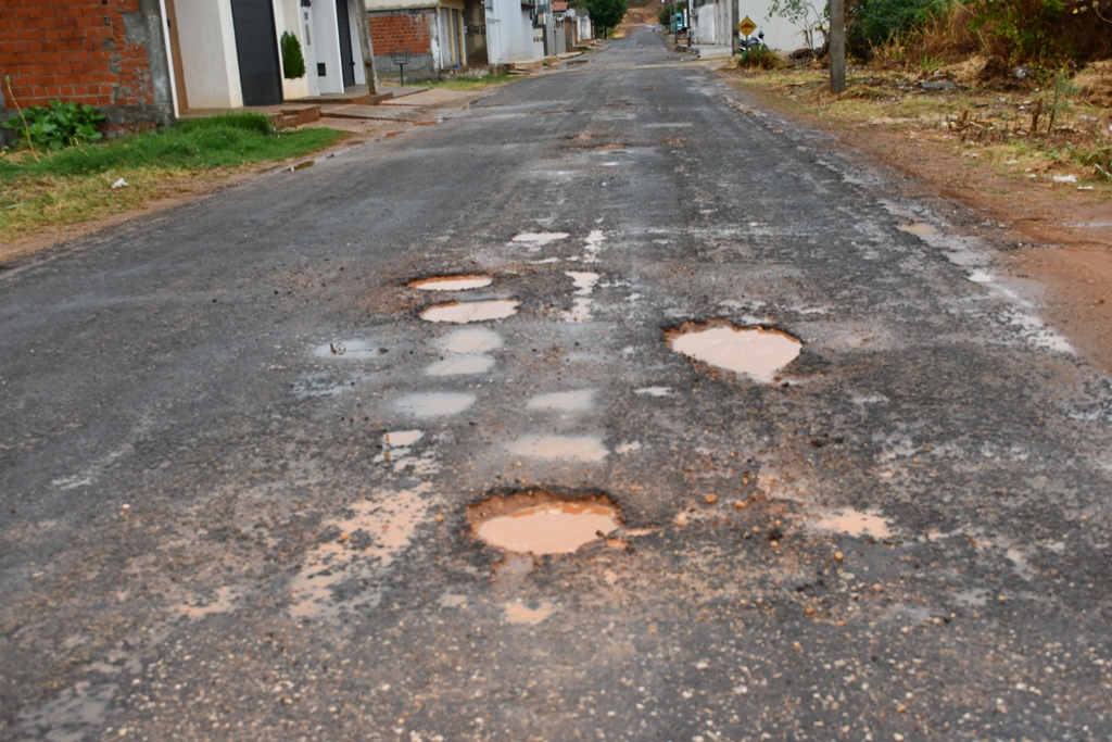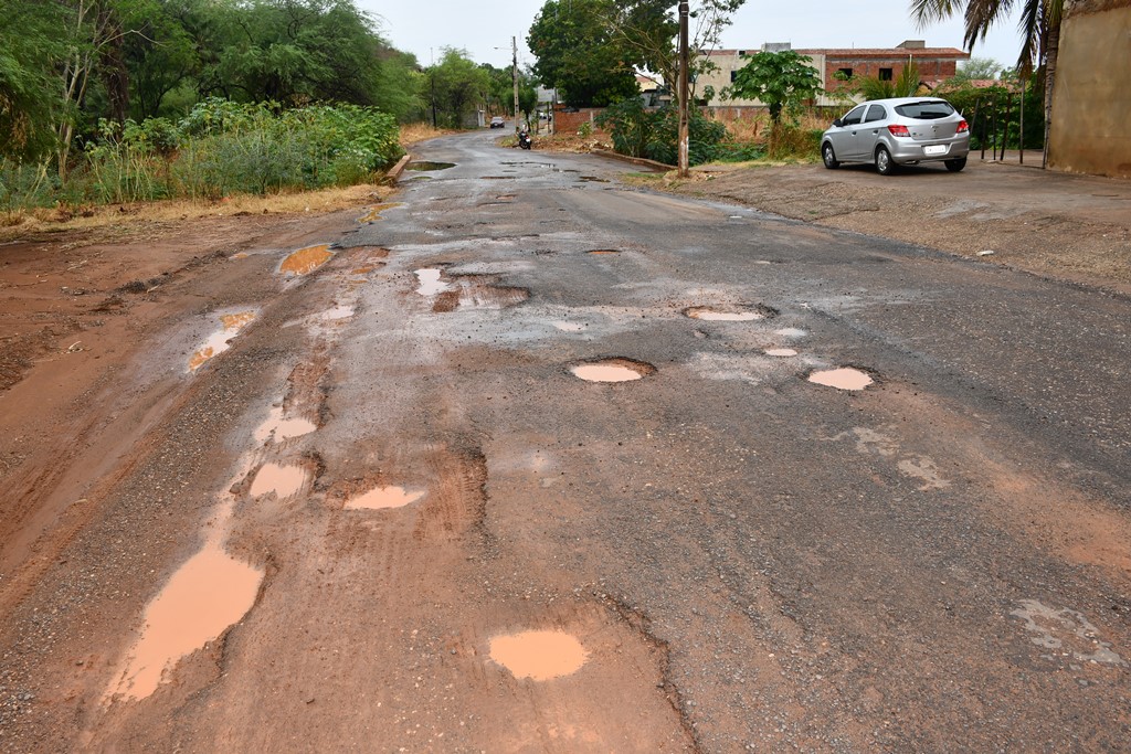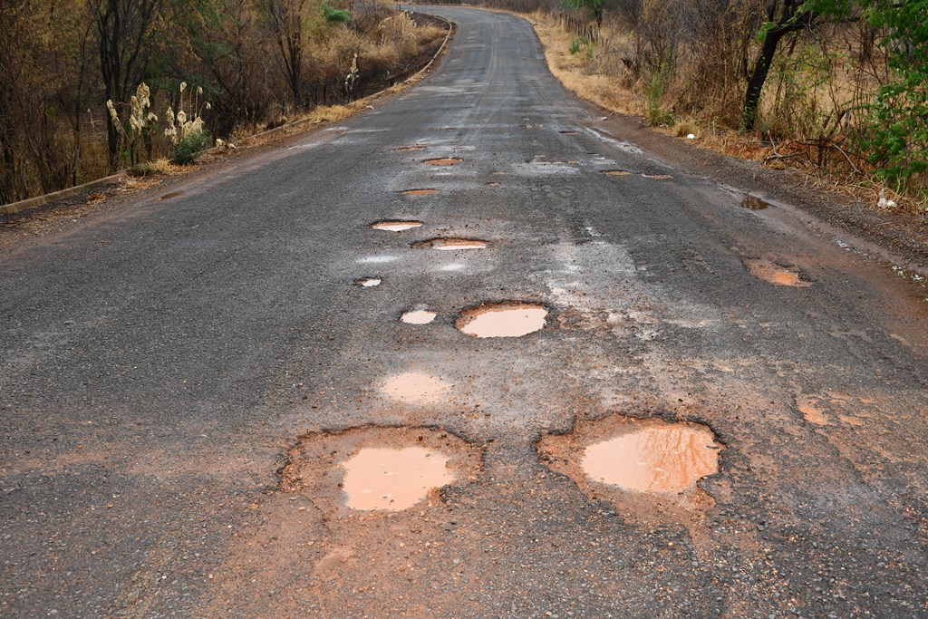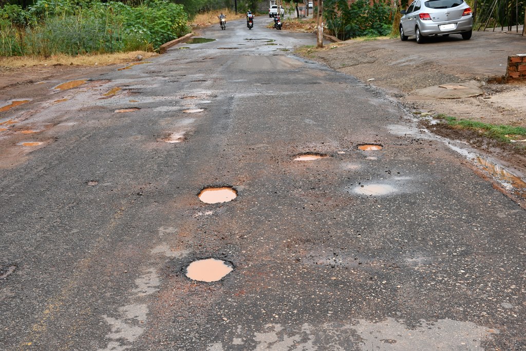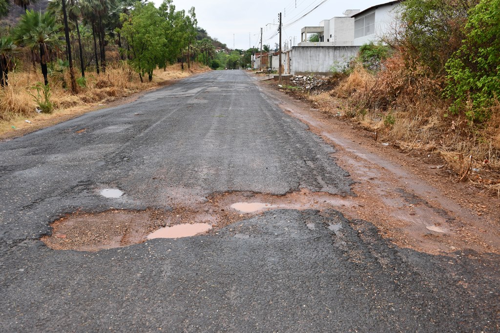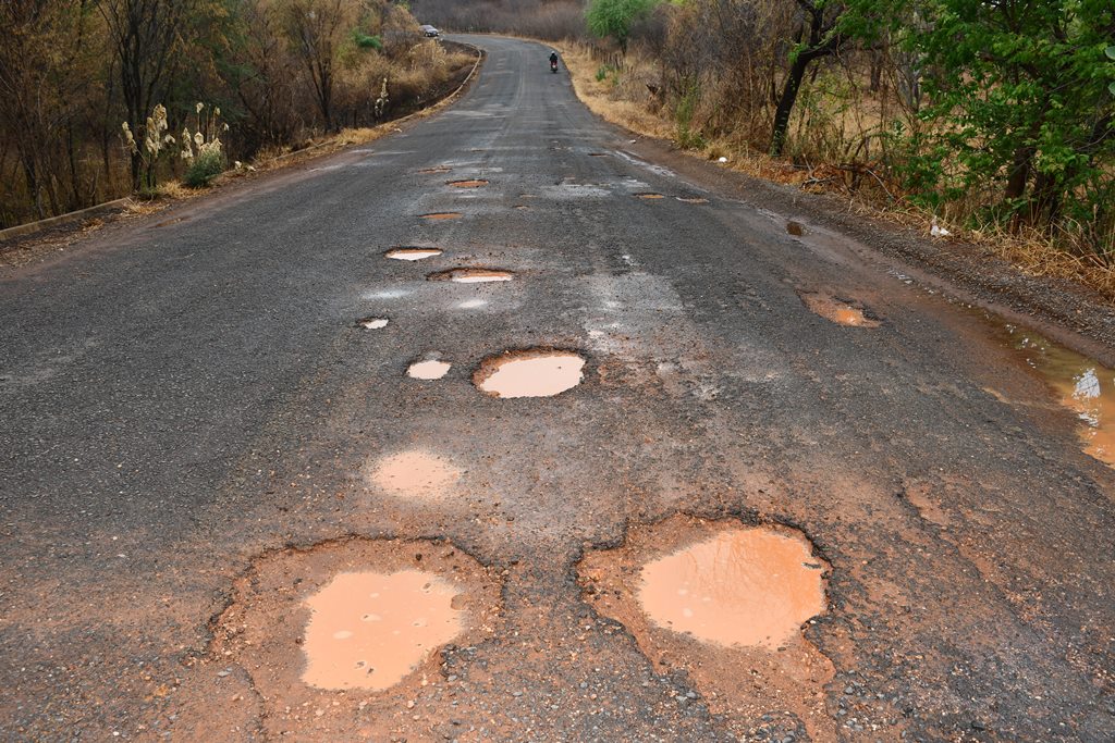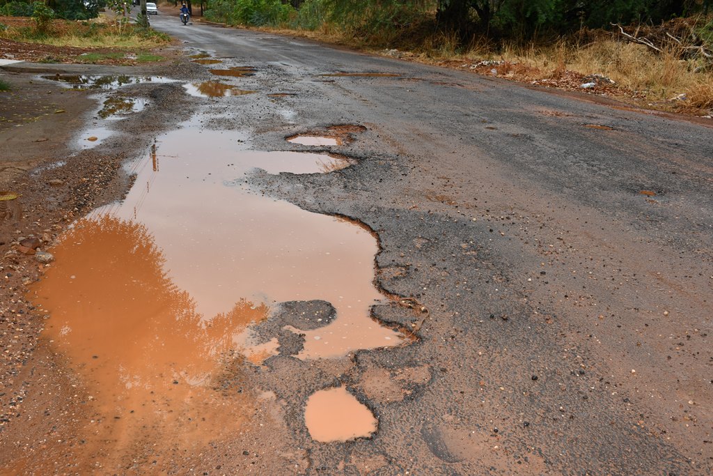 Sem passar por um recapeamento faz muitos anos, a estrada está cheia de buracos em vários pontos