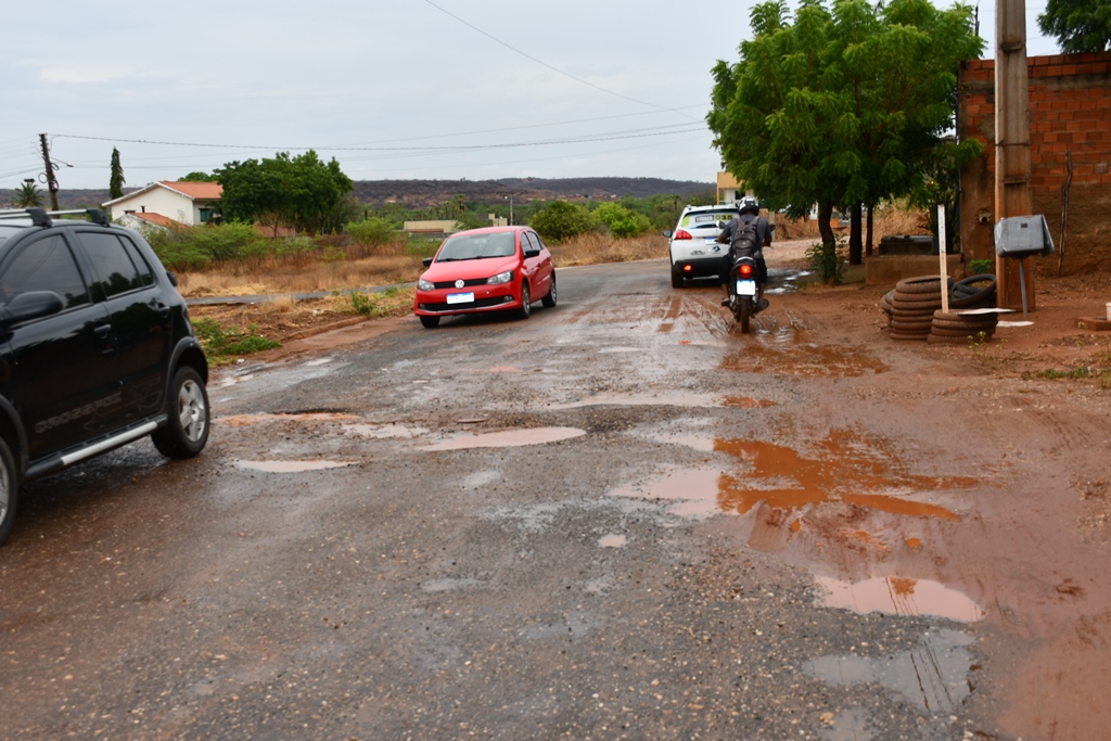 Bastou à primeira chuva em Picos para mostrar o descaso do governo do estado para com a rodovia Antônio Rodrigues de Sousa Martins, que liga a avenida Severo Eulálio, em Picos, ao povoado Gameleira dos Rodrigues. A via está tomada de buracos em boa parte de sua extensão, principalmente no trecho entre os bairros Emaus e Belo Norte.