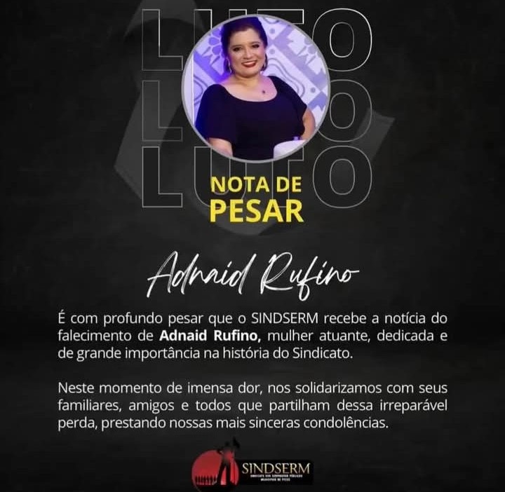 O Sindserm de Picos emitiu nota lamentando morte da professora Adnaid Rufino. O Sinte-PI também se manifestou através de nota.